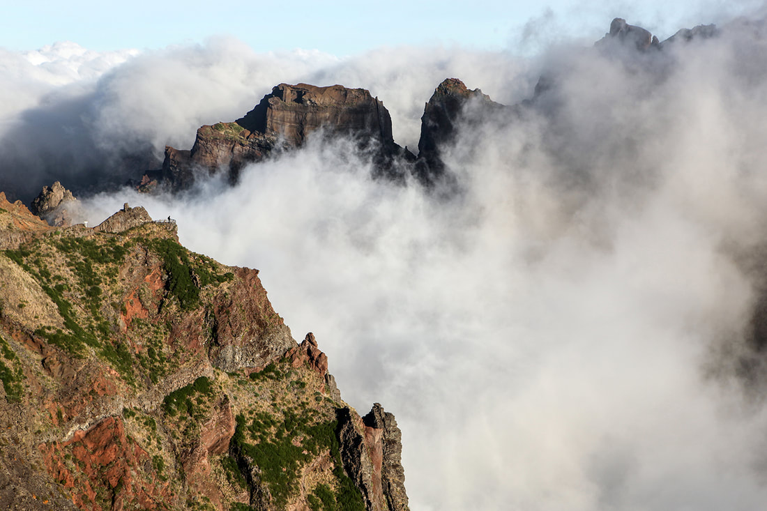 Ici pas de forêt luxuriante, c’est la montagne qui domine les nuages. Nous chaussons nos chaussures de randonnée pour réaliser le parcours le plus spectaculaire de l’île : le sentier qui relie le Pico do Arieiro au Pico Ruivo. Dès le départ, on comprend rapidement q’ii s’agit d’une randonnée haute en sensations : situé sur une crête, le chemin surplombe des falaises escarpées. La vue est à couper le souffle. Les jeux de nuages avec les sommets rocheux attirent l’attention, que c’est beau !